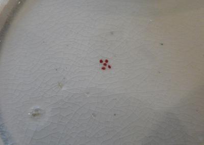 Good Evening. I just found your website while trying to find clues to the background of my china cups and the back stamp. I found six matching cups/saucers on a dusty shelf, buried and forgotten, in a junk store in Nashville, about a year ago. Probably not extremely valuable, but in their own way, beautiful survivors of time and unknown circumstances. Based on my experience I know these have to be old. I could imagine Thomas Jefferson using these while reading his evening paper. I love Georgian/Federal era antique china, glass and silver and I love treasure hunting. One of my other favorite pieces is a poor little deep dish saucer, beautifully hand painted with tiny flowers that make a monogram design in the center and back stamped with the Royal Vienna beehive. The real one. It was broken and poorly, though probably lovingly, re-glued but it is still beautiful. It is true Royal Vienna and the impressed back stamp date was dated to 1789, the year of our first Presidential Election in the US and the date Mary Antoinette met an unfortunate end. The Royal Vienna Factory was under the ownership of Austrian Empress Maria Theresia, her mother. Makes one wonder how this came to be in Tennessee, how and when was it broken, who owned it and why was it "saved"? I feel like I am rescuing art forms, and the hard work of some unknown artist, that could end up broken, discarded or under appreciated. I have over the years collected so many things... alas my poor husband said "some have to go if you want to buy more". So I became an antiques dealer and, sometimes begrudgingly, sell some things to finance buying "new things". Antique hunting has provided such an education about people, places and the history of so many items we take for granted. I am now researching sailing history i.e.: "The Cutty Sark" because I think I have the c1860's Glenock Scotland silverplated Whist "Winners" Trophy the designers/owners passed among themselves each year. I love using an antique item and marveling at how it was made, the workmanship and talent that went into it. How difficult it must have been to acquire the resources in the 18th century colonies. I marvel at the skill and labor that went into it. Can you imagine blowing glass in the 18th century by firelight & oil lamp? How many broke before a successful one was made? I wish a course on antiques had been taught in my High School; it would have made me much more interested in history! My mystery piece is a set of six cups/saucers with blue and white applied printed design. The design looks to be "folded over" into the inside of the cup. Based on the irregular placement of the print, the design of the cup, the crackle, it looks OLD to me. Unlike the Royal Vienna piece, this set looks, hand made yes, but mass produced and "quickly" done. Not your "fine china". The cups do have handles and are 3" tall x 3 1/4 (approx) diameter across the top. The saucers are about 5 1/2" diameter. Not the dainty little things made just for the ladies but definitely a period tea cup that the "man of the house" would feel comfortable handling. Were these made in England or China? Can you imagine, these cups arrived in America on a wooden SAILING ship? The only mark I see is 5 red dots in a square like on dice. A couple of the saucers also have what looks like an impressed 13 in the body. I am not sure how early potteries were using decal printing in lieu of "painting" glazes for decoration. I have a bookshelf of books and searched the internet, I can not find a back stamp of just 5 red dots. On another note, I collect Georgian and Early Federal Brooches as well as some Victorian. I just started designing jewelry in which I incorporate (without damaging them) these into beautiful necklaces that can be worn today. I am FabulousFamilyTreeHeirlooms and will be posting some of my creations next week or so when I finish putting together a collection and photographing them (and when I fix the website photo problem.) It seems a shame to have these beautiful objects just stored away out of sight when they could be worn but ladies don't seem to wear brooches that often today. We have also launched Burwoodhall Country Estate B&B Thompsons Station TN on our 12 acre farm. I built the house after Mount Vernon and similar Federal Era Buildings.