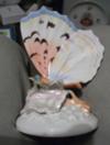 I would be grateful for any advise regarding this little spill vase in the shape of a Butterfly. It stands 5" high, 4" across and 3.5" across the base. The Mortlock stamp is above a lozenge with a central 'Rd' with 'C' at 3 o'clock, 'W' at 6 o'clock but the other 2 are too blurred to read. This was given to me by an elderly Lady in 1970. She had been given it as a present many years before but I wasn't able to clarify a date. It is in the Belleek style with the iron lustre glaze.