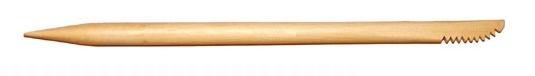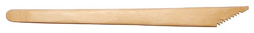 The pointed end is an essential potter's needle - for cutting, trimming, shaping and making small indents. The scraper end of this clay modeling tool is a clay remover and shaper smoother. The serrated edges give a unique ability to make smooth contours and planes that a non-serrated edge could not. Can be used on concave planes, unlike the basic tool above.