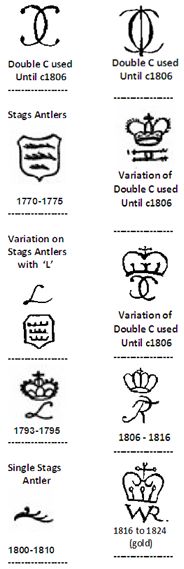 The reversed 'C' cyphers were replaced in 1806 with the letters TR beneath the crown (looks either like an odd shaped cursive R rather than a T.R. or otherwise the cursive T could be mistaken for a J R).