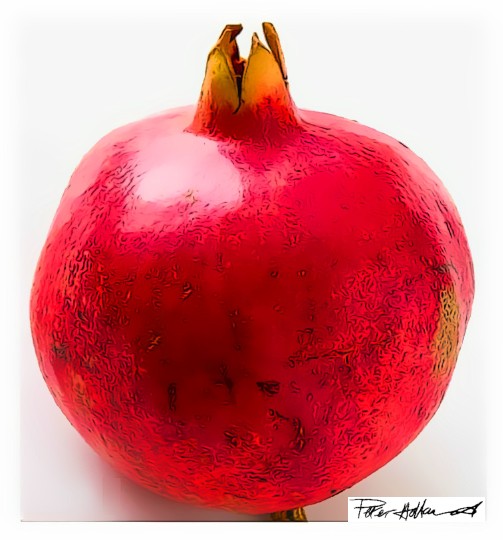 The round shape of the pomegranateIn Chinese mythology, the three blessed fruits are the pomegranate, the peach and the citrus fruits (the 'sanduo', or '3 abundances').