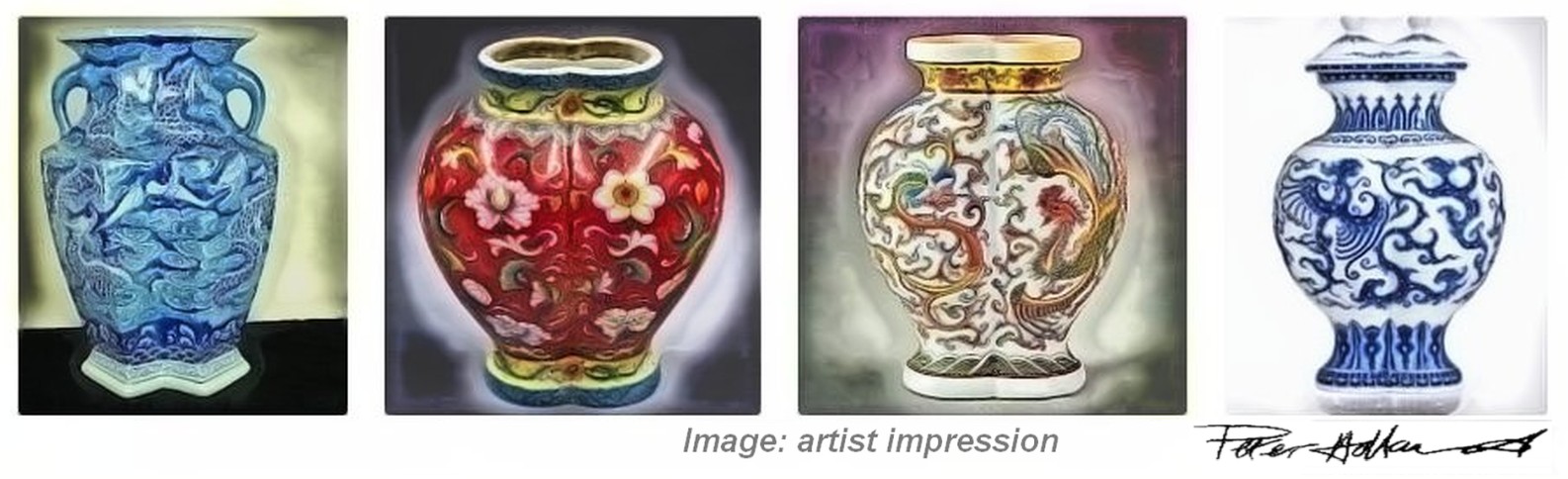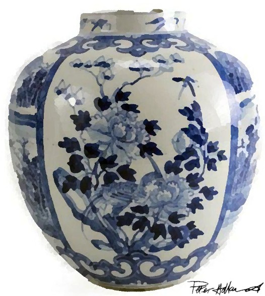 Image: artist impressionThe Yuan dynasty is the era when the first blue & white porcelain was created in China. The previous attempts at blue & white were much earlier, forgotten and unknown until found in a shipwreck and were earthenware (porous, thicker, and fired at a lower temperature.