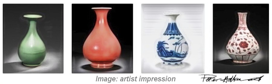 The first thing to note is that there are only about twenty shapes in all, and each shape has its own unique backstory within Chinese culture. Each vase form is specifically named and easily recognisable, despite there being variations of shape, detailing and decoration.