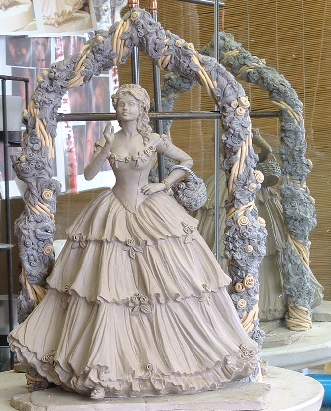 "Professional sculptors can use multiple types of clay for sculpting figures in a single commission. My 'Summer Breeze' figurine (see below) combined ceramic clay for the figure, plasteline for the arbour structure, and polymer clay for intertwined vines—each chosen for its specific working properties."