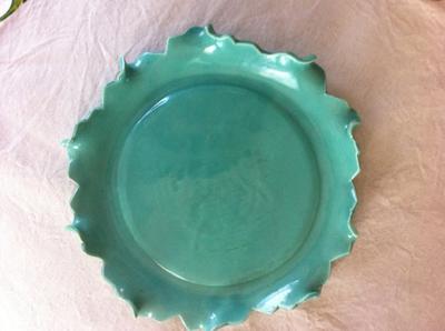 Thank you so much for any help you can give me! I really do like this little plate -- it's so different in the way that it was made. Also, the color almost matches my green Fiesta Ware, and it looks quite nice in the sideboard next to the Fiesta Ware.
