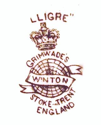 I can't find another example of the backstamp. The closest I can come is from the early 20th century with WINTON in the banner but a spaced GB rather than GRIMWADE'S. I also can't find another example of GRIMWADE'S with the apostrophe in the name.