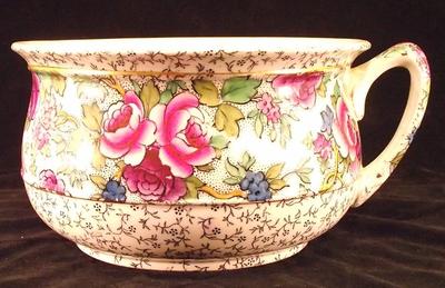 The piece is a chamber pot purportedly in the "FILLIGRE" pattern. I say that with caution since it's a guess on our part that "FI is what's missing from LLIGRE" & it's supposed to be the pattern name.