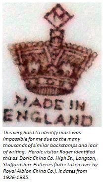 Samuel Radford China Dish - The Rest of the Story:- Peter was kind enough to identify the mark on the back of this dish as that of Samuel Radford (click …